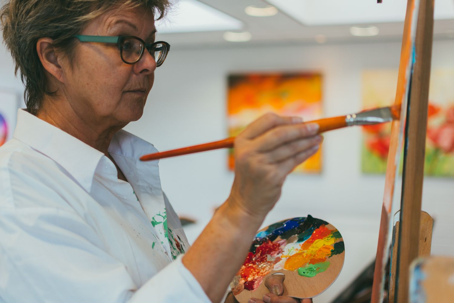 Annelies: ‘Ik vind het heerlijk om naar schilderles te gaan. De begeleiding van Sonja in je schilderproces is top.’