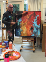 Bijna dagelijks ben ik in mijn atelier te vinden. Het is een fijne, lichte plek om aan mijn schilderijen te werken. Ik schilder met acryl, aquarel en (watervermengbare) olieverf. Het is geweldig om te spelen met verf en andere materialen. Een schilderij begint bij mij met een plan, maar al gauw laat ik me leiden door wat er ontstaat en dan wordt het spelen met verf! Ik werk er graag alleen aan mijn schilderijen, maar zeker ook met alle leuke mensen die wekelijks in het atelier komen. De cursisten zijn voor mij een bron van inspiratie, we ontdekken samen veel mooie dingen en hebben het ook reuze gezellig.
