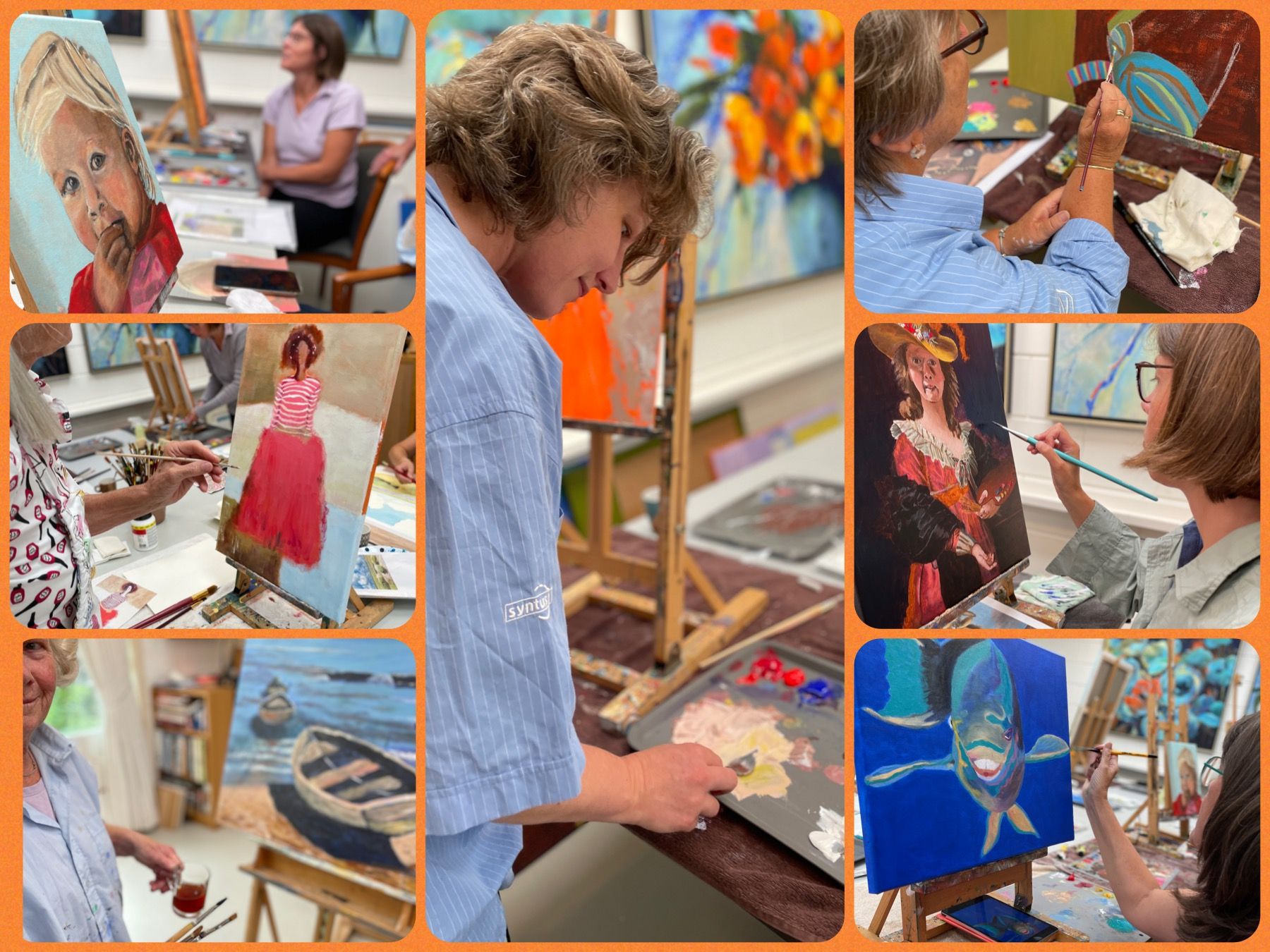 Vol verwachting, met schitterende foto's en veel energie stappen deelnemers aan de zomerschilderweek ieder jaar weer het atelier in. Het is en blijft een fijne uitdaging om in één week - vier schilde…